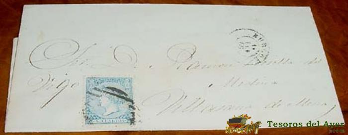 SOBRE CIRCULADO - ESPAÑA. 4 CUARTOS, MAT. BURGOS 1866- MUY RARO CON FECHADOR. MAGNÍFICA. A VILLASANA DE MENA (BURGOS) - HISTORIA POSTAL