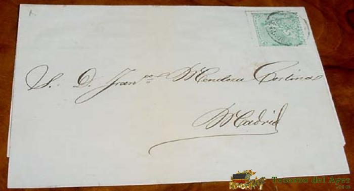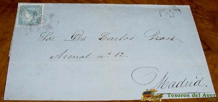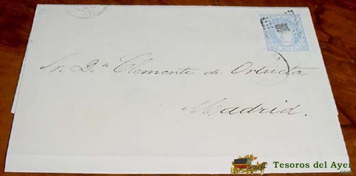 SOBRE CIRCULADO - ESPAÑA. 4 CUARTOS, MAT. MADRID 1865- MUY RARO CON FECHADOR. MAGNÍFICA. HISTORIA POSTAL