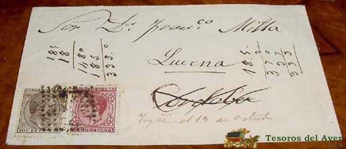 SOBRE CIRCULADO - ESPAÑA. CORREOS 1878 ? , MAT. - MUY RARO A LUCENA - HISTORIA POSTAL