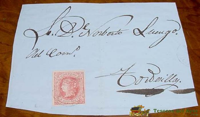 TROZO SOBRE CIRCULADO - ESPAÑA. CORREOS 1864 4 CUARTOS - COMUNICACIONES - MATASELLOS A TORDESILLAS - HISTORIA POSTAL