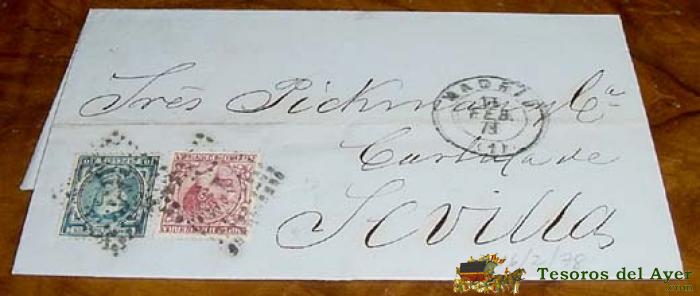 ANTIGUA CARTA CON SOBRE CIRCULADO A LOS SRES. PICKMAN DELA CARTUJA DE SEVILLA SOBRE NEGOCIOS DE LOZA Y COMENTARIOS SOBRE ZULOAGA Y FAMILIA - ESPAÑA. CORREOS 1878 - COMUNICACIONES - MATASELLOS Y FECHADOR MADRID A SEVILLA - HISTORIA POSTAL
