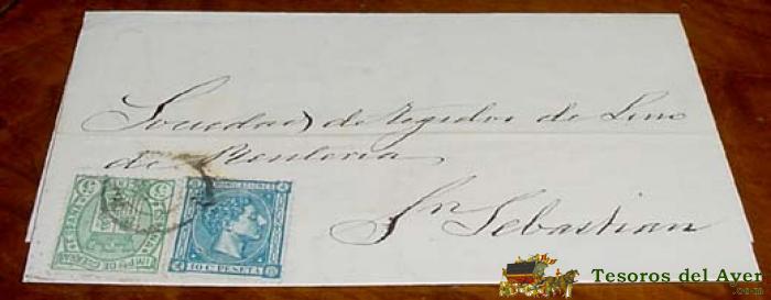 SOBRE CIRCULADO - ESPAÑA. CORREOS 1871 - MATASELLOS OVIEDO A SAN SEBASTIAN - HISTORIA POSTAL