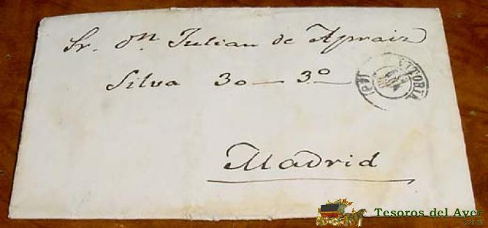 SOBRE CIRCULADO - ESPAÑA. CORREOS 1868 -- MATASELLOS VITORIA A MADRID - HISTORIA POSTAL