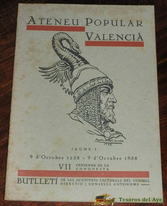 REVISTA ATENEU POPULAR VALENCIÀ, JAUME I, 1938, VII CENTENAR DE LA CONQUESTA, 9 OCTUBRE, BUTLLETI DE LES ACTIVITATS CULTURALS DEL CONSELL, MIDE 31 X 21 CMS. TIENE 16 PÁGINAS.