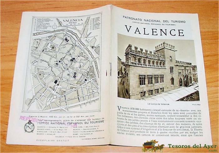 FOLLETO DE VALENCIA, EN FRANCES, REPUBLICA ESPAÑOLA, - PATRONATO NACIONAL DE TURISMO, 8 PAGINAS TODAS ILUSTRADAS Y MAPA DE LA CIUDAD. INCLUYE INFORMACION DE INTERES PARA VISITANTES-CHELO