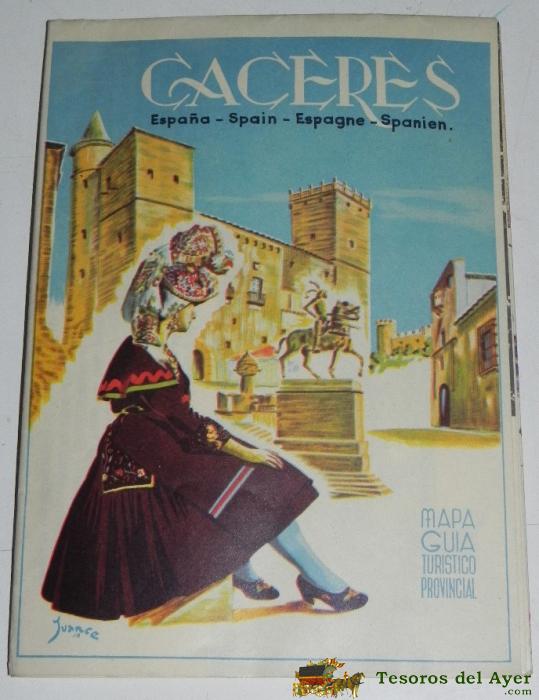 FOLLETO TURISTICO DE CACERES - MAPA TURISTICO DE CACERES POR UN LADO Y POR EL OTRO FOTOGRAFIAS Y DESCRIPCION DE LAS PRINCIPALES POBLACIONES, MIDE 17,5 X 13 CMS, PLEGADO, CON MUCHAS FOTOGRAFIAS, EN INGLES.