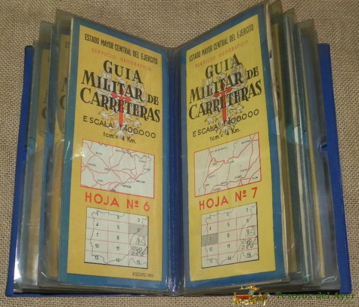ANTIGUA COLECCION COMPLETA DE LA GUIA MILITAR DE CARRETERAS, 15 MAPAS PLEGADOS CON SU FUNDA, ESCALA 1.400.000, AÑOS 1958-59, MIDEN 29 X 13 CM.