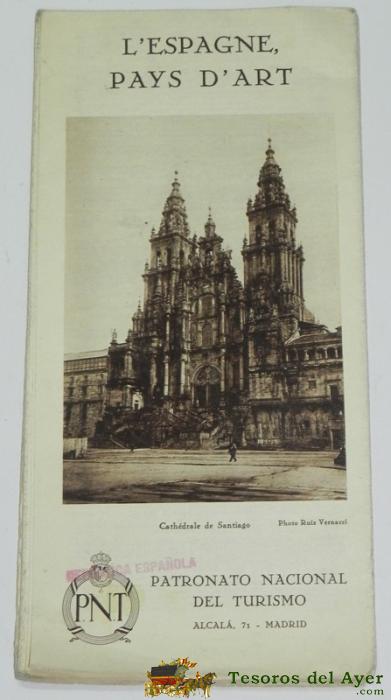 ANTIGUO FOLLETO TURISMO: L ESPAGNE PAYS D ART. PATRONATO NACIONAL DEL TURISMO. TEXTO EN FRANCéS, FOTOS EN NEGRO DE MADRID, SEVILLA, TOLEDO, BURGOS, ZARAGOZA, ETC... SELLO DE LA REPúBLICA. MIDE 24 X 12 CMS. PLEGADO.