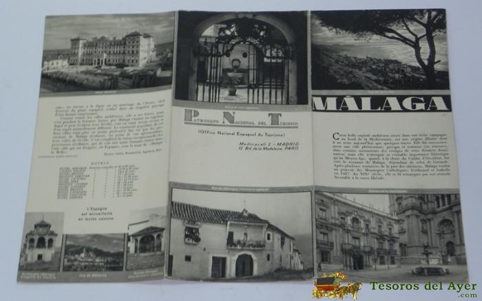 ANTIGUO FOLLETO TURÍSTICO: MALAGA, PATRONATO NACIONAL DE TURISMO. APROX 1930., FOTOS DE ANTEQUERA, RONDA, ETC... PLEGADO EN TRES, MIDE 33 X 24 CMS, TEXTO EN FRANCES.