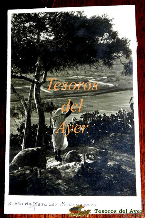 ANTIGUA FOTO POSTAL DE LA KABILA DE MAZUZA (MARRUECOS) AL FONDO LA ALCAZABA DE FARHANA, MORO REZANDO, 1920, CAMPAÑA DE MARRUECOS, GUERRA DEL RIFF, TAL COMO SE VE EN LAS FOTOS PUESTAS.