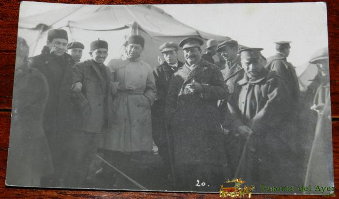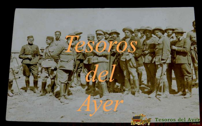 ANTIGUA FOTOGRAFIA POSTAL DE LA GUERRA DEL RIFF, GENERAL CABANELLAS, CON OTROS OFICIALES DE LA LEGION, POLICIA INDIGENA, MEHALA, REGULARES, CAMPAÑA DE MARRUECOS, VER LA OTRA FOTO DE ESTE LOTE. INEDITA.
