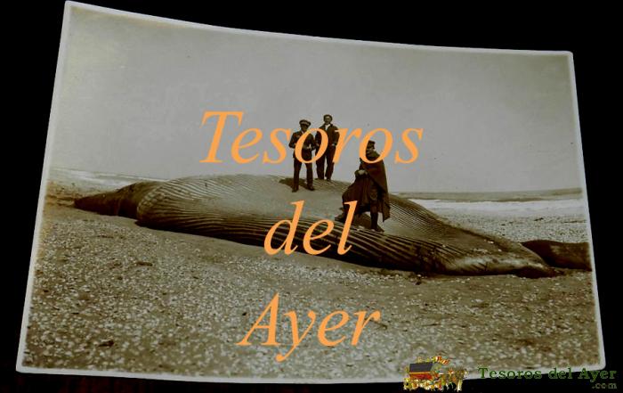 ANTIGUA FOTOGRAFIA DE LA GUERRA DEL RIF, MELILLA, BALLENA ARROJADA A LA PLAYA EN LA KABILA DE BENI SAID, CERCA DE AFRAN, FUE DESCUBIERTA POR UN AVION FLOTANDO MUERTA 1924, MIDE 17 X 12 CMS.