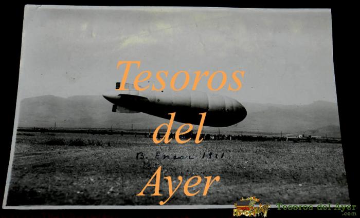 ANTIGUA FOTOGRAFIA DE LA GUERRA DEL RIF, MELILLA, GLOBO CAUTIVO, ZEPELIN DEL PORTAVIONES DEDALO, B. ENSAR 1921, MIDE 17 X 12 CMS.