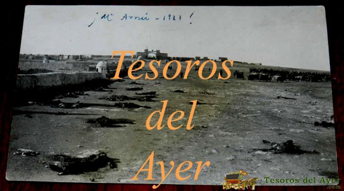 ANTIGUA FOTO POSTAL DEL MONTE ARRUIT - CAMPAÑA DEL RIF 1921- CADAVERES ESPAÑOLES, GUERRA DE MARRUECOS, PROTECTORADO ESPAÑOL - CALIDAD FOTOGRAFICA.