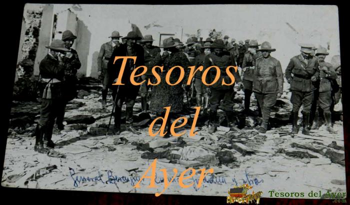 ANTIGUA FOTOGRAFIA DEL GENERAL BERENGUER, JUNTO CON REGULARES Y OTROS OFICIALES, FOTO RUBIO, CEUTA, GUERRA DEL RIF, ESCRITA POR EL REVERSO DESDE EL HOSPITAL DE SANGRE DE BUCHARRAX EN 1921, TAMAÑO POSTAL.