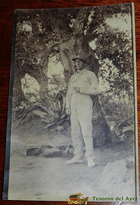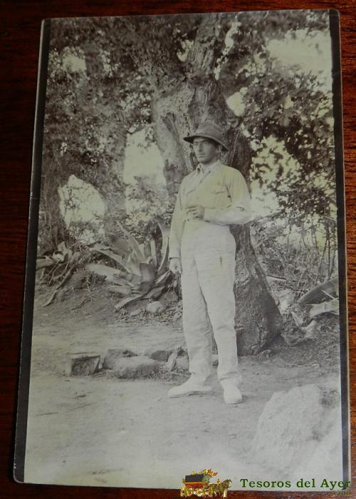 ANTIGUA FOTO POSTAL DE MILITAR ESPAÑOL EN LA GUERRA DEL RIF, CON TRAJE DE MAÑANA, NO CIRCULADA, ESCRITA POR EL REVERSO.
