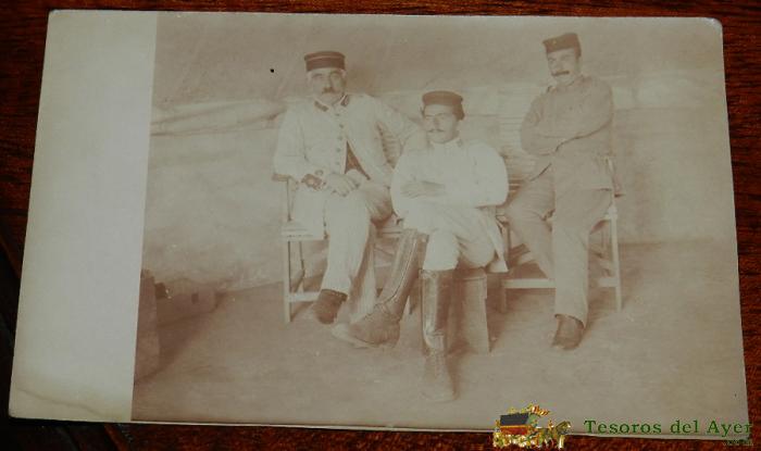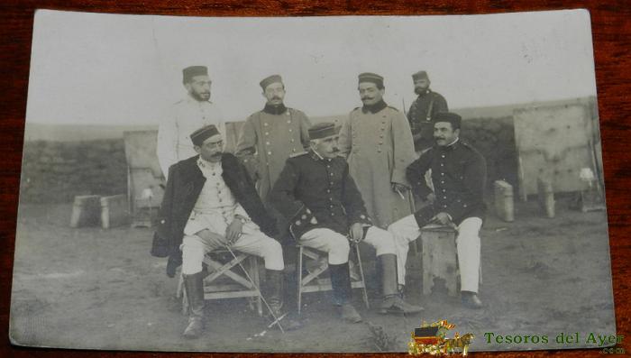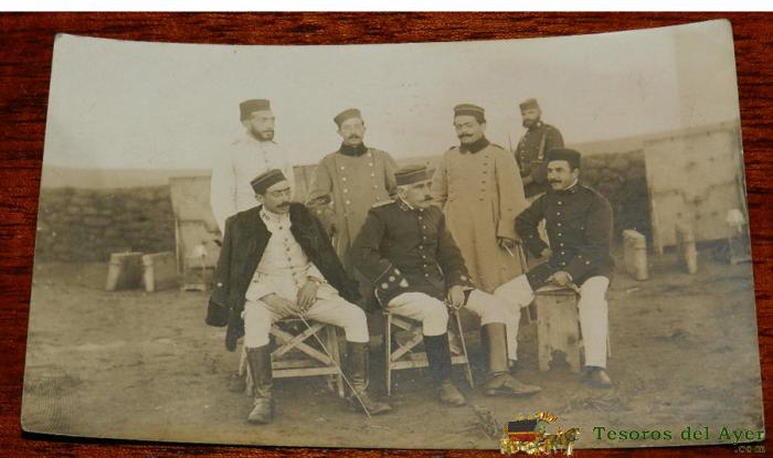 ANTIGUA FOTO POSTAL DE OFICILAES ESPAÑOLES EN LA GUERRA DEL RIF, NO CIRCULADA.