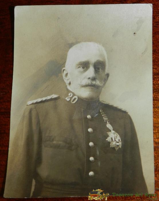 ANTIGUA FOTOGRAFIA DE GENERAL DEL REGIMIENTO NUMERO 20, CON MARIA CRISTINA Y CONDECORACION DE LA CAMPAÑA DEL RIF, MIDE 8,5 X 6 CMS.