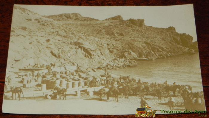 FOTO POSTAL DE LA PLAYA DE EL CAMPAMENTO MILITAR EN CALA DEL QUEMADO, ALHUCEMAS, MARRUECOS, GUERRA DEL RIF, ESCRITA.