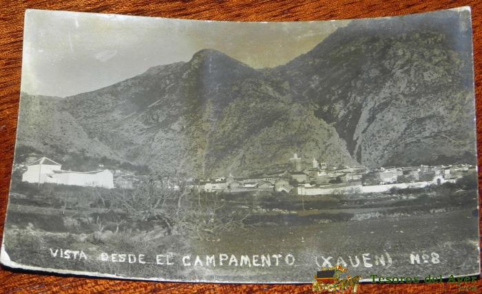 ANTIGUA FOTO POSTAL DE XAUEN, MARRUECOS, GUERRA DEL RIF, VISTA DESDE EL CAMPAMENTO, N. 8, NO CIRCULADA.