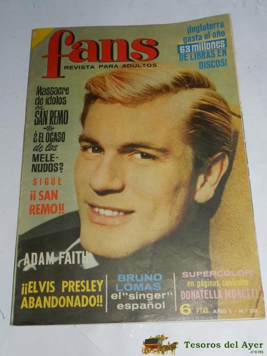REVISTA FANS Nº 39 ADAM FAITH - ELVIS PRESLEY - BEATLES - SANREMO DONATELLA MORETTI BRUNO LOMAS, AñO 1966.