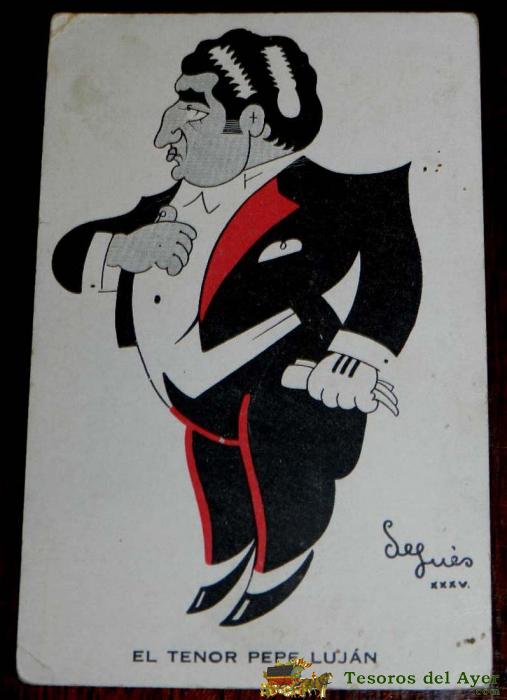 ANTIGUA POSTAL DE EL TENOR PEPE LUJAN, ILUSTRADA POR SEGUES, ED. GALERIA ARTISTICA NUEVA ESPAÑA, NO CIRCULADA.