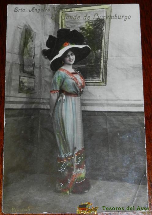 ANTIGUA FOTO POSTAL DE SRTA. ANGELES VILLAR EN EL CONDE DE LUXENBURGO, ZARZUELA, CIRCULADA.