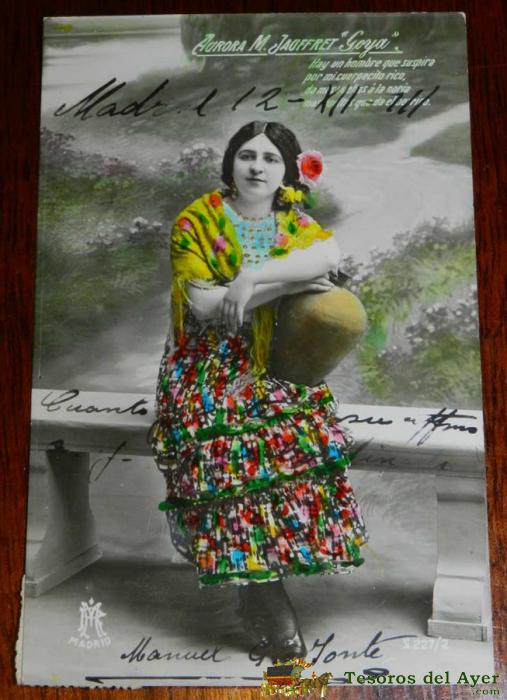 ANTIGUA FOTO POSTAL DE AURORA M. JAUFFRET GOYA, ZARZUELA, ED. M.P. MADRID, CIRCULADA.