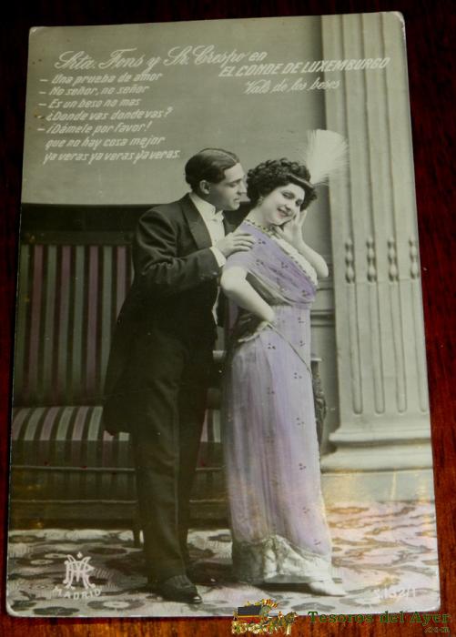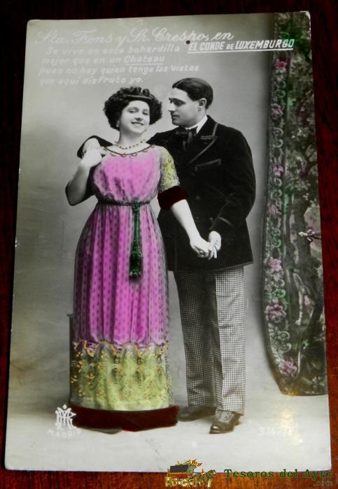 ANTIGUA FOTO POSTAL DE ZARZUELA, SRA, FONS Y SR. CRESPO, EN EL CONDE DE LUXEMBURGO, ED. R.P. MADRID, NO CIRCULADA, ESCRITA.