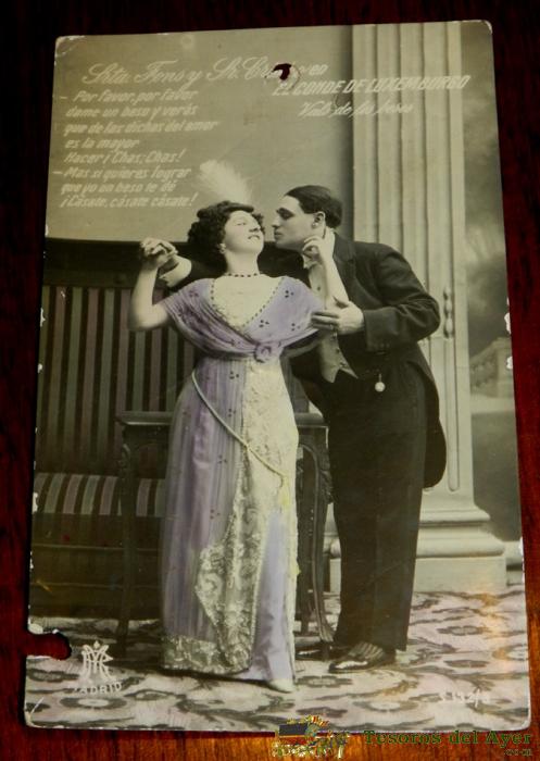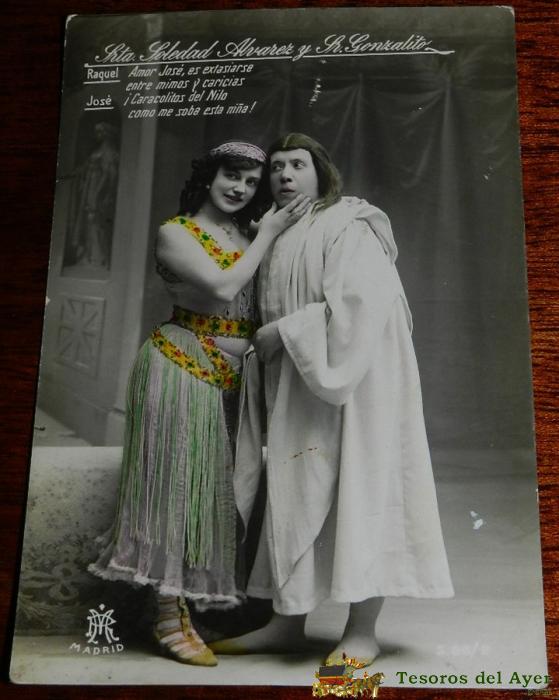 ANTIGUA FOTO PSOTAL DE SRTA. SOLEDAD ALVAREZ Y SR. GONZALITO, OPERA, ED. MP. MADRID, NO CIRCULADA, ESCRITA.