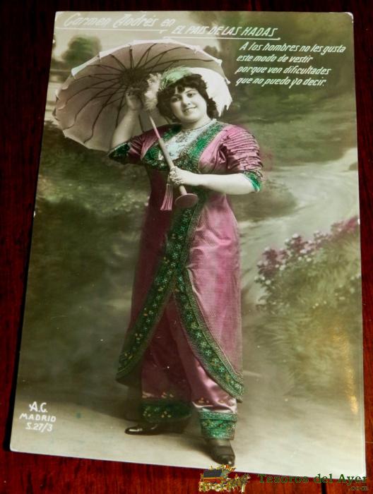 ANTIGUA FOTO POSTAL DE CARMEN DE ANDRES EN EL PAIS DE LAS HADAS, ZARZUELA, OPERA, ED. A. C. MADRID, NO CIRCULADA, ESCRITA.