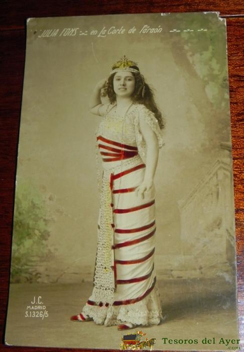 ANTIGUA FOTO POSTAL DE JULIA FONS DE CHECA (SEVILLA, 1882 - MADRID, 4 DE ENERO DE 1973) FUE UNA CANTANTE DE ZARZUELA ESPAñOLA, EN LA CORTE DEL FARAON, J.C. S.1326/5 ESCRITA EN 1910