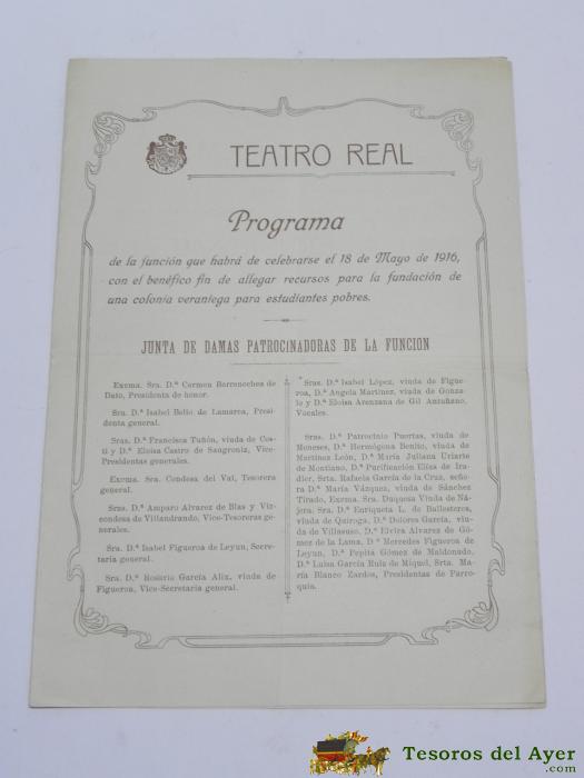 PROGRAMA DEL TEATRO REAL, 18 DE MAYO DE 1916, OPERA DE LA BOHEME, EL CASCABEL AL GATO, IMP. GONZALEZ Y GIMENEZ, MIDE 27 X 19 CMS.