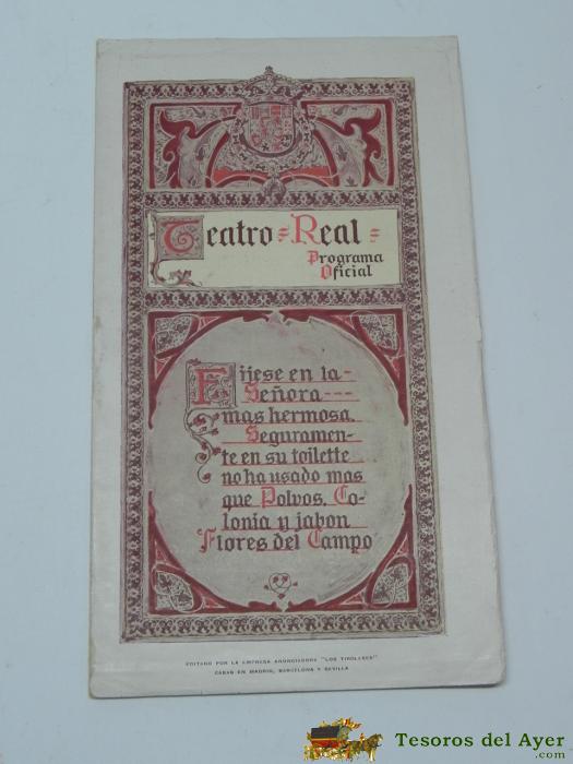 PROGRAMA DEL TEATRO REAL, 12 DE DICIEMBRE DE 1914, OPERA PARSIFAL, TIENE 24 PAG, MIDE 23 X 13 CMS.
