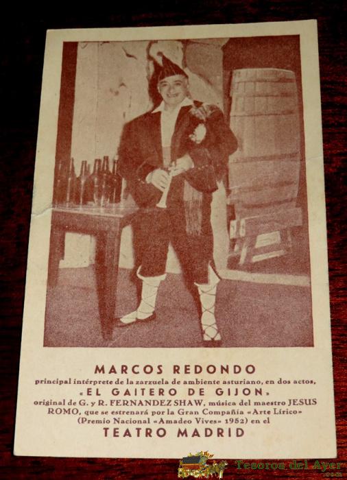 MARCOS REDONDO, ZARZUELA EL GAITERO DE GIJON, TEATRO MADRID, EDIT. GRAFICAS CINEMA, POSTAL SIN CIRCULAR