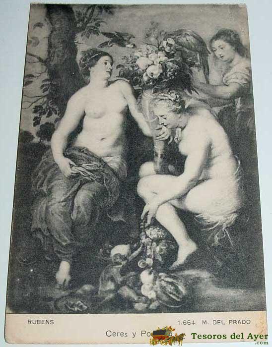 ANTIGUA POSTAL DE RUBENS - CERES Y POMONA - MUSEO DEL PRADO - FOT. LACOSTE - NO CIRCULADA.