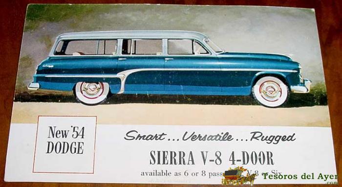 ANTIGUA POSTAL DEL COCHE NEW 54 DODGE . SIERRA V-8 DOOR . PUBLICIDAD - PRINTED IN USA SIN CIRCULAR