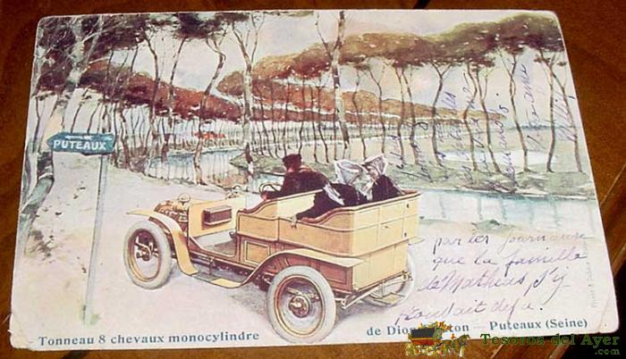 ANTIGUA POSTAL COCHE - TONNEAU 8 CHEVAUX MONOCYLINDRE DE DION-BOUTON - PUTEAUX - SEINE - CIRCULADA.