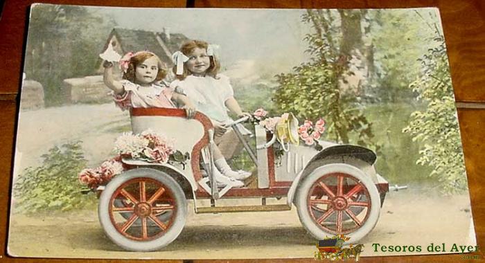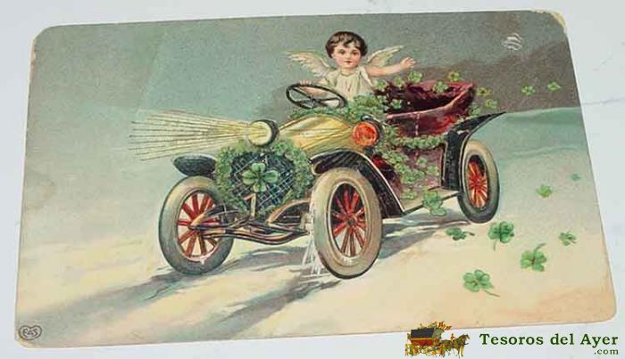 ANTIGUA POSTAL ANGELITO EN COCHE - NO CIRCULADA - ESCRITA.