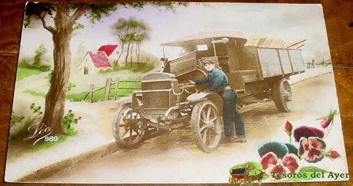 ANTIGUA POSTAL DE COCHE DE EPOCA - EN RELIEVE - CIRCULADA.