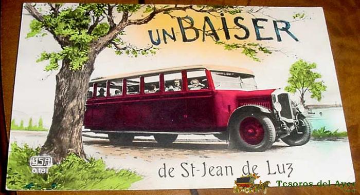 ANTIGUA POSTAL DE AUTOBUS - UN BAISER - DE ST-JEAN DE LUZ - CIRCULADA.
