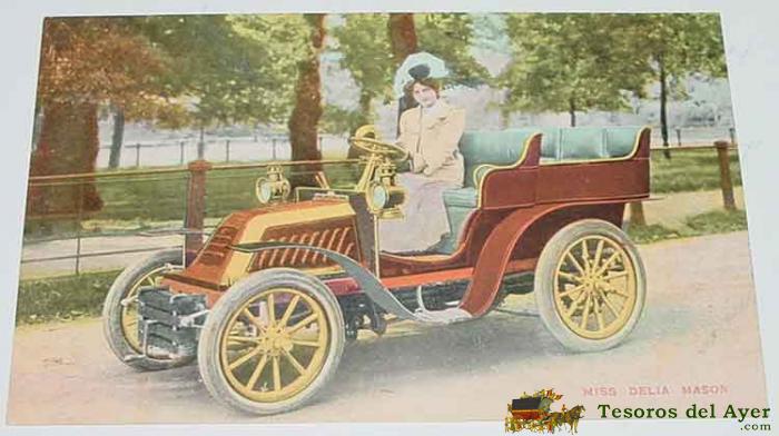 ANTIGUA POSTAL DE MISS DELIA MASO EN SU COCHE - NO CIRCULADA.