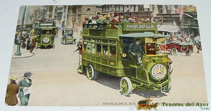 ANTIGUA POSTAL DE AUTOBUS DOBLE EN FIFTH AVENUE DE NEW YORK - NO CICULADA.