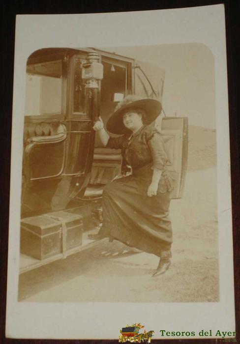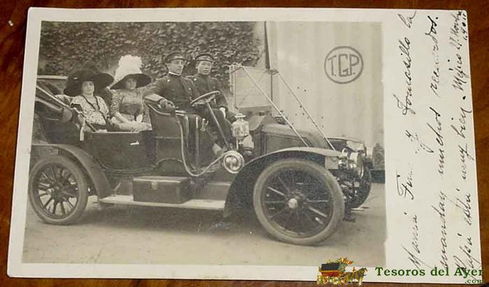 ANTIGUA FOTO POSTAL DE COCHE CON PERSONAJES DE LA ARISTOCRACIA . ESCRITA EN 1904