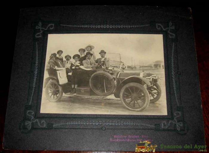 ANTIGUA FOTOGRAFIA ALBUMINA DE COCHE TORPEDO DESCAPOTABLE - FOTO RODOLPHO GRUTHER - MIDE INCLUIDO EL PASPARTOUT 27 X 22 CMS.