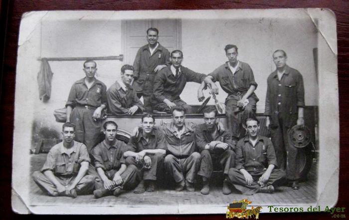 ANTIGUA FOTO POSTAL DE MECANICOS DE TALLER DE COCHES - NO CIRCULADA.