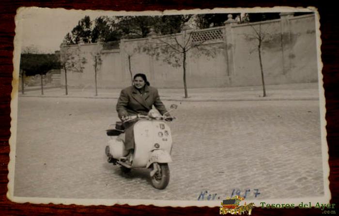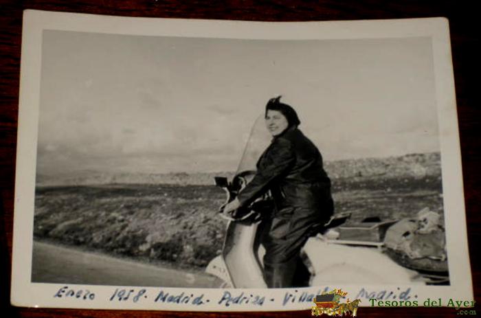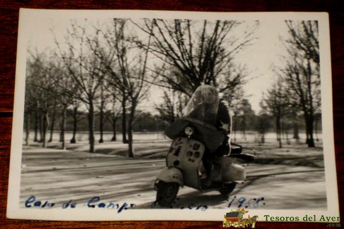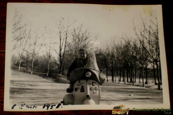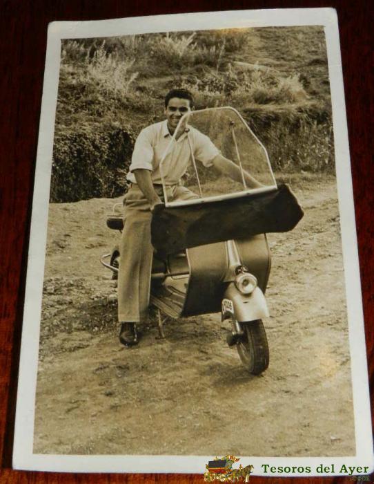 ANTIGUA FOTOGRAFIA CON MOTO VESPA, TAMAÑO POSTAL