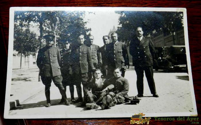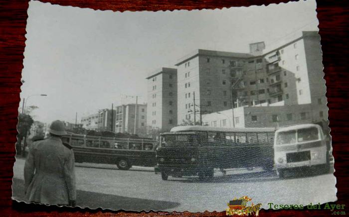 ANTIGUA FOTOGRAFIA DE CAMIONES Y AUTOBUSES JUNTO CON POLICIA MUNICIPAL, NO SABEMOS LOCALIDAD. MIDE 11,6 X 8,5 CMS.