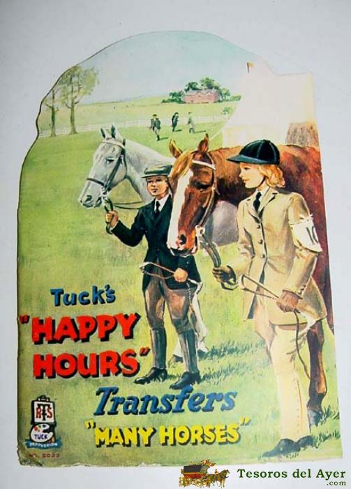 ANTIGUO CUENTO CON CALCAMONIAS INGLESAS - TUCK´S HAPPY HOURS - TRANSFERS - MANY HORSES - RAPHAEL TUCK & SONS LTD. MUY BUEN ESTADO DE CONSERVACION. A TUCK BOOK. PERTENECIA AL MUESTRARIO DE UN REPRESENTANTE INGLÉS DE CUENTOS CON SELLO EN LA PORTADA QUE PONE