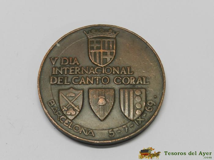 MEDALLA DEL V DIA INTERNACIONAL DEL CANTO CORAL - MONASTERIO DE PEDRALBES 1969, MIDE 6 CMS.